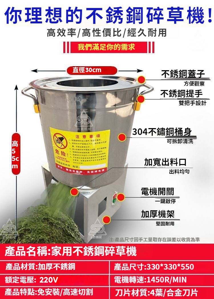 4分鐘前【養殖好幫手】多功能碎菜機,碎菜只需1秒,廠家直銷,貨到付款 量大優惠! - 800W不鏽鋼台式碎菜機--NT$3590